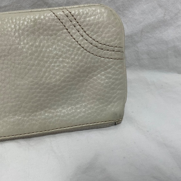 This wristlet is in good, clean condition, with just a minor mark on the interior lining, and very little wear visible on the leather. There is no hang tag.