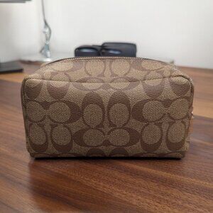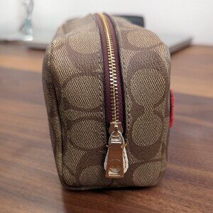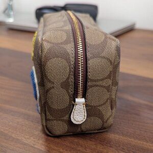 Coach X Peanuts Small Boxy Cosmetic Case In Signature Cavas With Varsity Patches. Very light signs of wear on the patches. Size approximately: L 7" x W 2,5" x H 4".