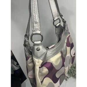 Elevate your accessory game with the Coach Y2K Purple/Sliver Shoulder Purse, a harmonious blend of sophistication and practicality. This medium-sized shoulder bag features a striking purple canvas exterior, complemented by a subtle silver logo pattern and 3 sections for a good store