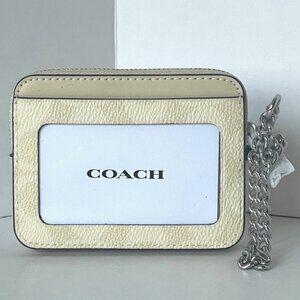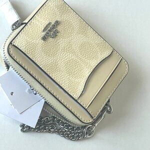 Coach Zip Card Case CW883 ID Wallet Yellow Signature Canvas Chain Strap ORGPKG