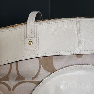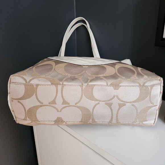 Coach tote bag.Cream and gold outside, brown interior