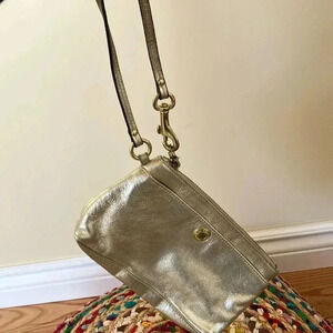 Coach gold metallic leather pouch clutch wristlet