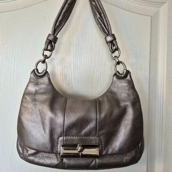 Leather Coach handbag in silver. Used twice. In excellent condition.