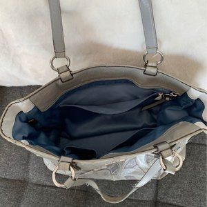 Grey and silver Coach hand bag with minor strap wear & tear.