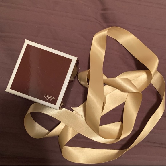 Box (approximately 2.5 x 2.5 inches), drawstring dust bag (Approx 7.5 x 8 inches), ribbon