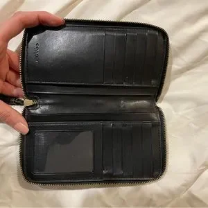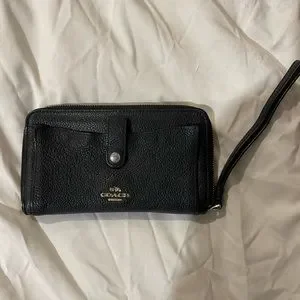 Black leather Coach wallet with wrist strap. Great condition.