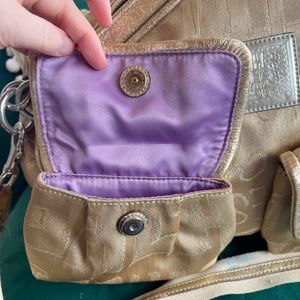 Authentic coach purse, a pretty rare find. Coach poppy label. It’s in overall good condition but does have some marks. I don’t know if the marks are washable as I have not tried and will be up to you..Any marks that I’ve seen are listed in the images. Originally had a price tag of 298$, but tag is NOT with the bag.