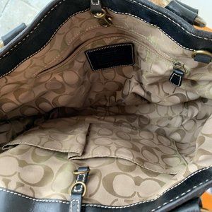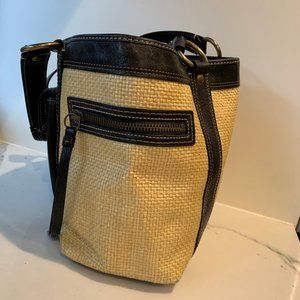 Creme raffia straw weave purse with black leather detail (and leather handles)