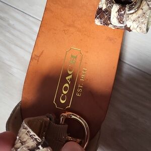 8.5 leather snake skin print and gold sandals from coach. in good codniton.