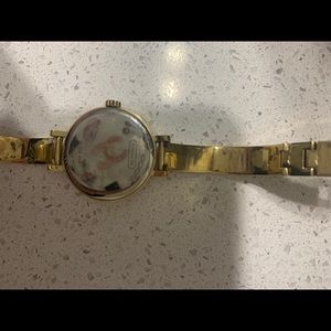 Stunning coach watch. Gold coloured not real gold. Butterfly clasp. Battery needs replacement. Minor scratches, nothing noticeable.