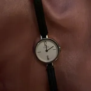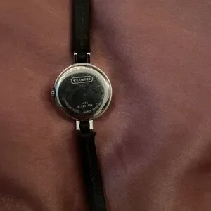 Dainty Coach watch with a leather strap. There is some slight wear on the strap (shown in the pictures) and it needs a new battery