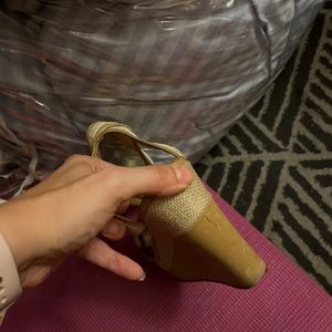 Beige/tan coach wedge sandals. Great for a summer day or even a night out. There’s some signs of use but they are still in good shape and still look great on. I also find them really comfortable.