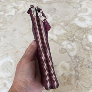 Coach Double Corner Zip Wristlet in Burgundy Leather EUC