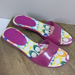 Coach Jelly Slide Sandals – Rainbow Monogram – Size 10 – 2” Heel