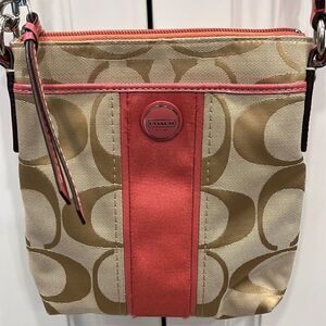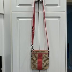 Coach Salmon Pink and Tan Logo Crossbody Bag. Excellent condition 💕💕