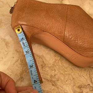 In excellent preowned condition gorgeous Coach Unna Stiletto heel booties in elegant neutral tan leather. Back zipper, 4” heels.