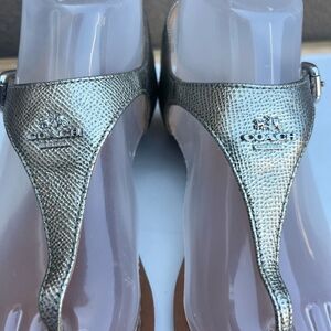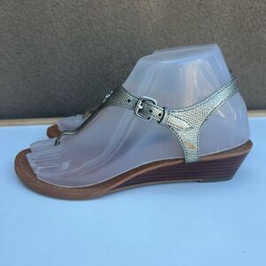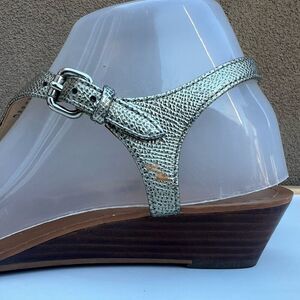 Coach Vitalia Gold Sandals T-Strap Slingback Pebbled Leather Low Wedge Size 7