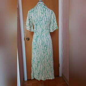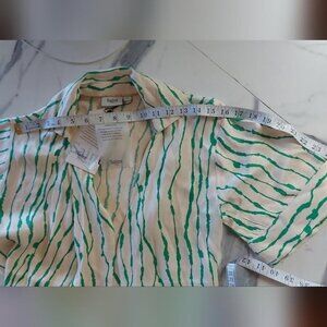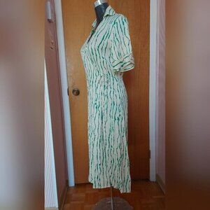 Size Small. V-Neck, collar, light waves print, viscose material, adjustable cord in the waist.