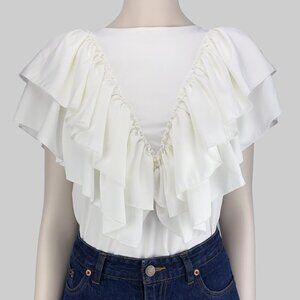 Coastal Cowgirlβ Victorian White Blouse Flaunt Ruffles Front&Back Yakuza s S-M
