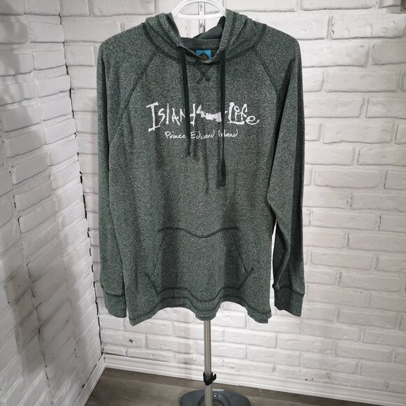 Coastal Culture Ladies Size Large Grey/Green Island Life Drawstring Hoodie