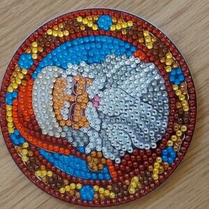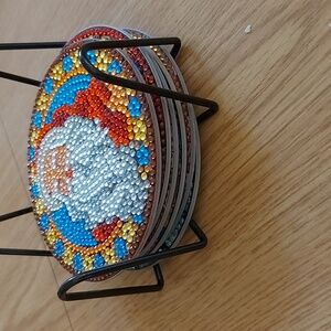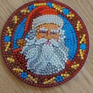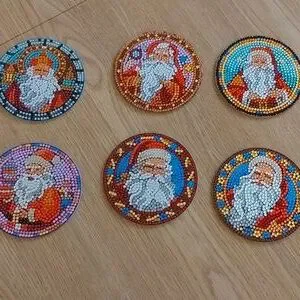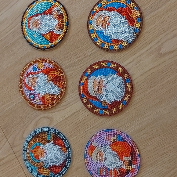 Set of 6 completed diamond art Santa coasters. Includes holder. Brand new.