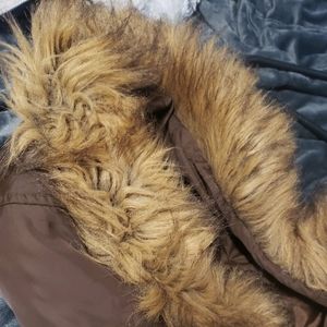 Brown coat with faux fur lining, it comes with a hoodie, its a size L but i think this will look good on a Size S, I'm a size M-L but the sleeves seems to short and too tight around my shoulders let me know if you have more questions!