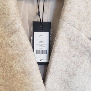 Cream coat, double button, lined, pockets. Brand new with tags, spare button.