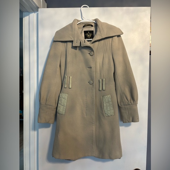 Missing one button and belt and leather detail on pockets a little wrinkled.