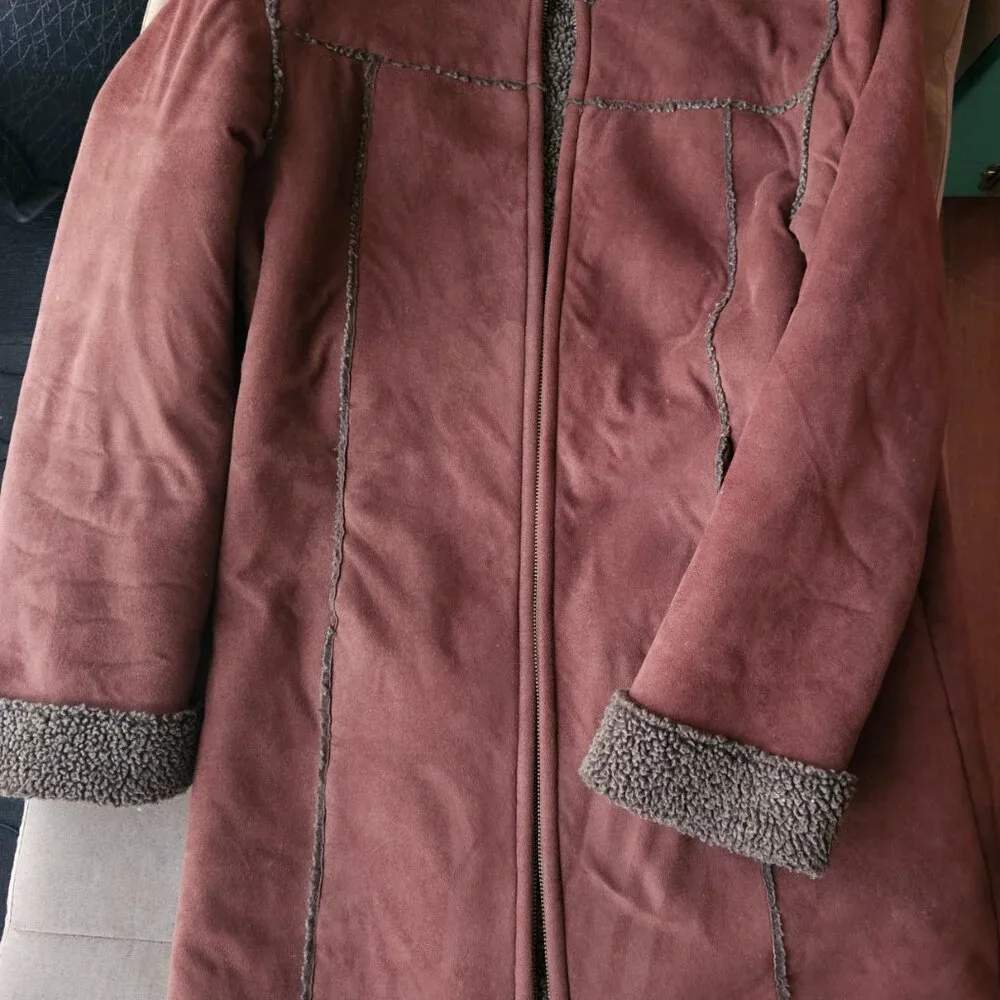 This beautiful ROOTS coat makes a warm fall and mild winter coat. It was used as an undercoat for an oversized top coat. The photos are not edited. The COLOR does appear brighter and more saturated on the photos than in reality.