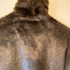Faux fur chocolate brow coat. In good condition except for 2 hooks missing at the front. Fully lined & lightweight.