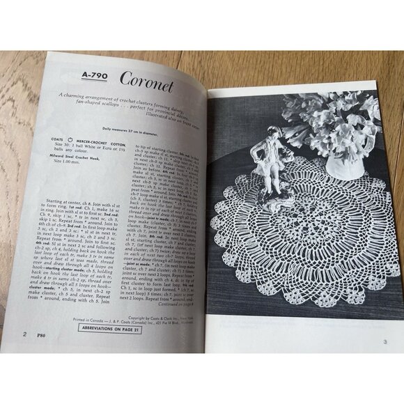Coats & Clark's Book No 197 Priscilla Doilies Crochet Knit Hairpin Lace Tatted