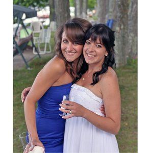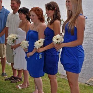 Cobalt blue pencil dress. Comes with detachable straps. Rubber piping along the front to help keep it up when worn strapless. Hugs the body, has a band around the waist to flatter the silhouette. Cut the tag out because it was sticking up out of the back, I wore once as a bridesmaid (see photos, we all had different dresses) H&M size 2. Side Zipper.