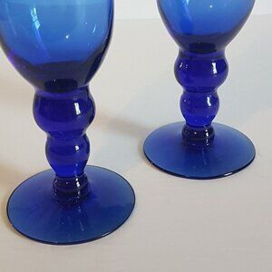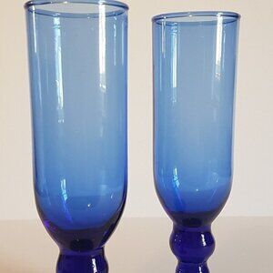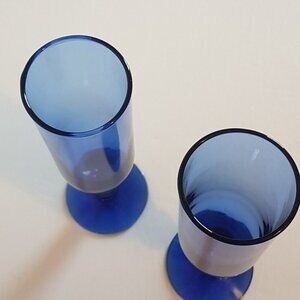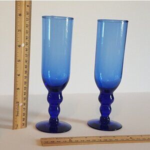 Cobalt Blue Hand Blown Champagne Glasses, Set of 2 Tall Wine Glasses, 8oz
