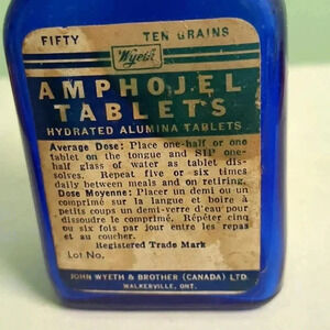 Cobalt Blue John Wyeth and Brother bottle for Amohojel tablets
