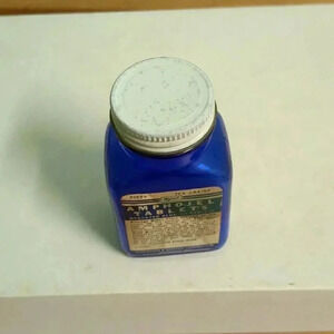 Cobalt Blue John Wyeth and Brother amohojel tablets empty bottle. From our Mother's collection of Cobalt Blue glass.