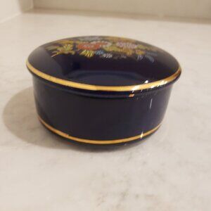 Cobalt Blue Porcelain Ceramic Floral Jewelry Container