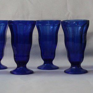 Gorgeous cobalt blue sundae glass or ice cream soda tumbler. Made by Anchor Hocking in their popular Tulip design, each glass is in excellent condition without any chips or cracks. Height is 6 3/4" and width is 3 1/2". Capacity is 12 ounces or 350ml.