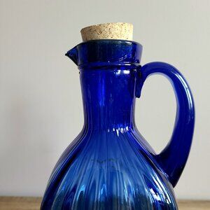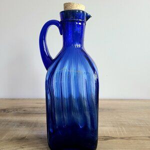 Cobalt blue ribbed glass bottle/jar/decanter with cork stopper.