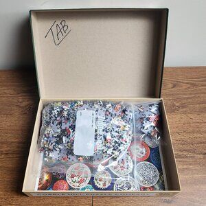 Cobble Hill decorative plates puzzle. 1000 pieces, done once and repacked. Initials written in the lid.