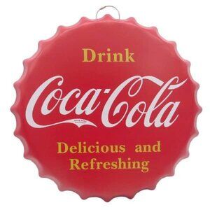 If you are a fan of Coca-Cola, you’ll most definitely want to include this bottle-cap shaped sign into your wall decor needs. The lightweight metal sign features the iconic Drink Coca-Cola logo printed with superior quality and with a big, bold display.