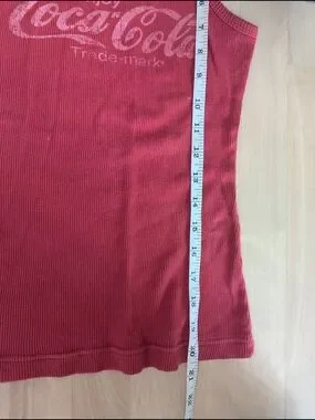 RARE Official Coca Cola sleeveless ribbed tank top in red. Slim, fitted silhouette for a flattering look. Soft, breathable fabric for all-day comfort. Subtle Coca Cola logo print for classic branded style.
