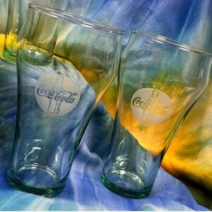 Always Coca-Cola Clear Bell Drinking Glasses Set of 4 in very good preloved condition. Like new! No chips or cracks and the logo on front of each clear glass in really good shape. They are in perfect condition for gift giving.
