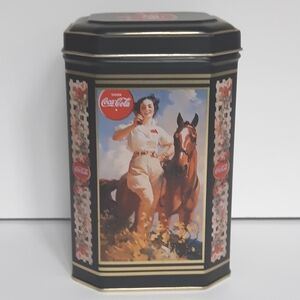 Coke collectible eight-sided tin with removable top