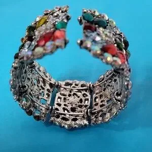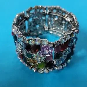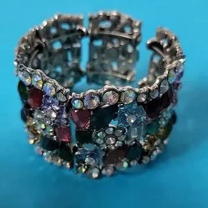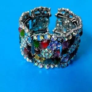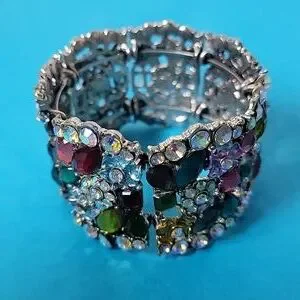 Cocktail Colorful Multi-Color Embellished Floral Rhinestone Stretchable Bangle