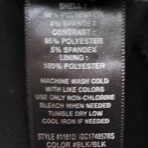 Bottom is pleated in a solid black fabric that has a slight sheen