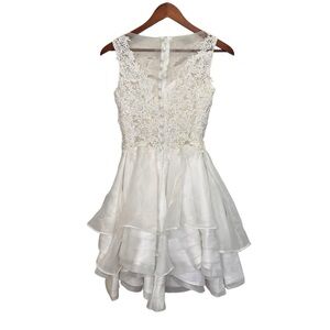 Cocktail Gown Wedding Short Tutu Floral Lace Tiered Organza Size XS