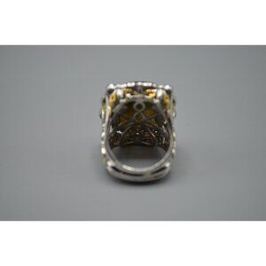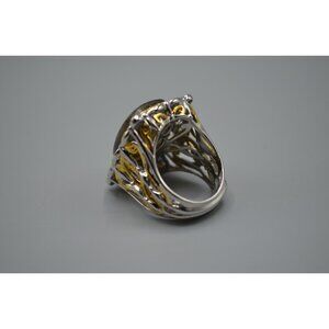 Cocktail Ring Green Stone Sterling Silver 925 NH Vermeil Size 7 Moss Agate?