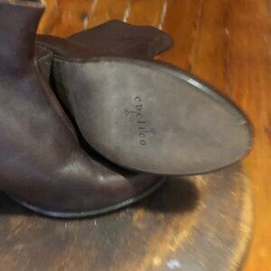 Gorgeous and extra special dress boots dark brown leather with a 3.5" heel. Side zip and lots of excellent designer jazz. Spice your trousers, skirts or jeans up with these great boots.