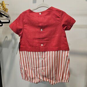 18M Pink with stripes nautical romper. From Spain. Brand new with tags.