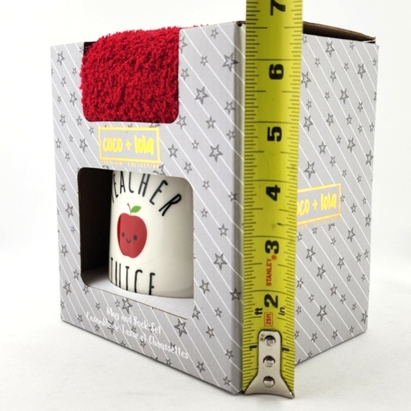 Coco + Lola Teacher Juice Premium Collection coffee mug and red socks gift set